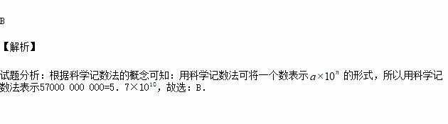 A.5.7×109 B.5.7×1010 C.0.57×1011 D.57×109