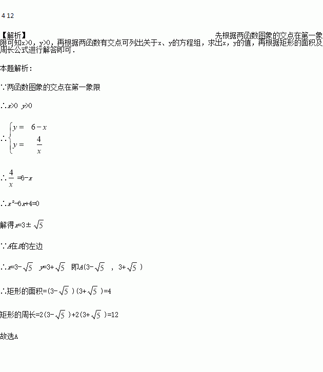 (x>0)的图象相交于点A,B,设点A的坐标为(x1,y1),那么长为x1,宽为y1的矩形面积和周长分别为_____、_____.