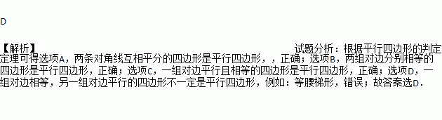 D. 一组对边相等,另一组对边平行的四边形是平行四边形