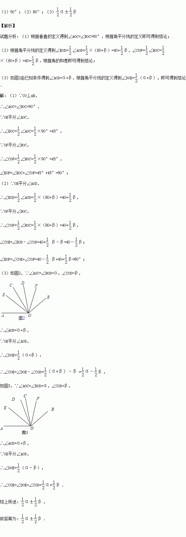 (2)如图2,若∠AOC=∠BOD=80°,OE、OF分别平分∠AOD与∠BOC.求∠EOF的度数;