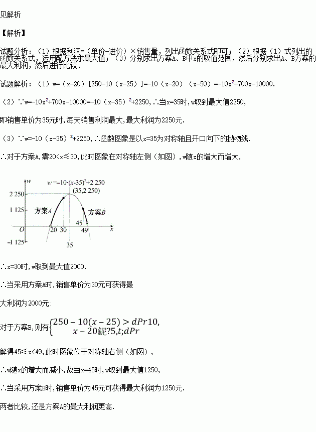 (12分)某商场要经营一种新上市的文具,进价为20元/件.试营销阶段发现:当销售单价25元/件时,每天的销售量是250件;销售单价每上涨1元,每天的销售量就减少10件.