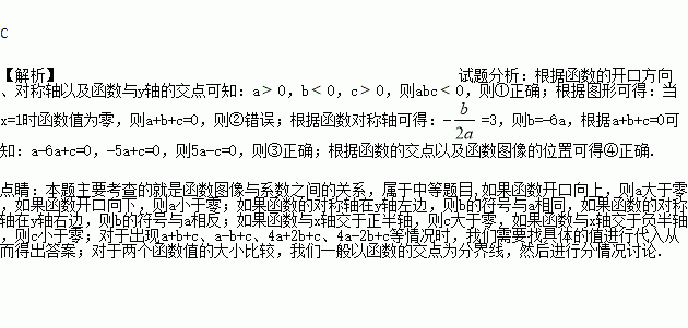 抛物线y1=ax2+bx+c与直线y2=mx+n的图象如图所示,下列判断中:①abc<0;②a+b+c>0;③5a-c=0;④当x<