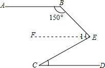 分析:过E作EF与AB平行,由AB与CD平行,得到EF与CD平行,利用两直线平行内错角相等,同旁内角互补得到结果,即可确定出∠1的度数.