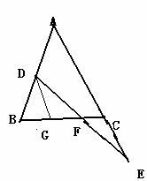 如图:E在△ABC的AC边的延长线上,D点在AB边上,DE交BC于点F,DF=EF,BD=CE。求证:△ABC是等腰三角形。(过D作DG∥AC交BC于G)
