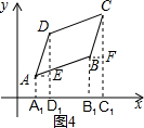 (2)分别过点A,B,C,D作x轴的垂线,垂足分别为A1,B1,C1,D1,分别过A,B作AE⊥DD1于E,BF⊥CC1于点F.在平行四边形ABCD中,CD=BA,根据内角和定理,又因为BB1∥CC1,可推出∠EDA=∠FCB,△DEA≌△CFB.依题意得出AE=BF,DE=CF,设C(x,y).由x-1=2-1,得x=5.由y-2=3-1,得y=4,继而推出点C的坐标.