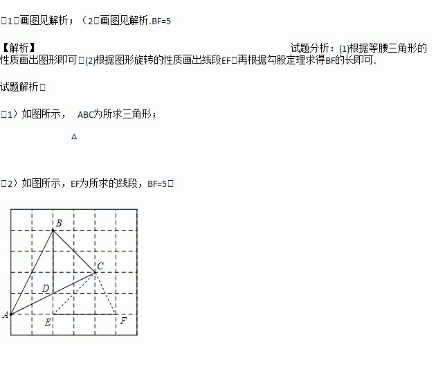 (2)在方格纸中画出△ABC的中线BD,并把线段BD绕点C逆时针旋转90°,画出旋转后的线段EF(B与E对应,D与F对应),连接BF,请直接写出BF的长.