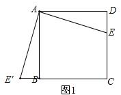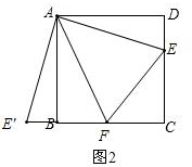(2)作∠EAE′的平分线交BC于点F,则△CFE的周长等于正方形ABCD的周长的一半,如图2,![]()