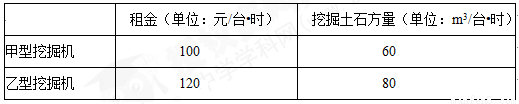 (1)若租用甲、乙两种型号的挖掘机共8台,恰好完成每小时的挖掘量,则甲、乙两种型号的挖掘机各需多少台?