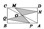 如图,矩形ABCD中,AB=4,BC=2,O为对角线AC的中点,点P、Q分别从A和B两点同时出发,在边AB和BC上匀速运动,并且同时到达终点B、C,连接PO、QO并延长分别与CD、DA交于点M、N.在整个运动过程中,图中阴影部分面积的大小变化情况是 ( )