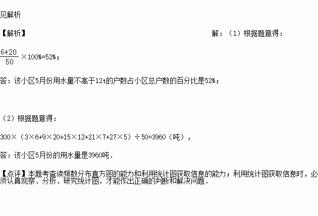 (1)试估计该小区5月份用水量不高于12t的户数占小区总户数的百分比;