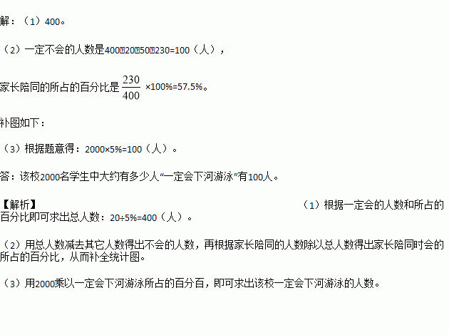(3)根据抽样调查的结果,估算该校2000名学生中大约有多少人“一定会下河游泳”?