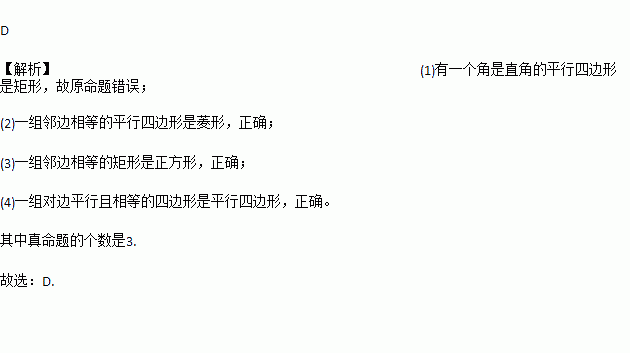 (3)一组邻边相等的矩形是正方形;