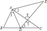 分析 如图所示由∠2=∠3,∠4=∠5可知:∠E=∠C,然后再证明∠BAC=∠DAE,最后利用AAS证明△BAC≌△DAE,从而可得到AE=AC.