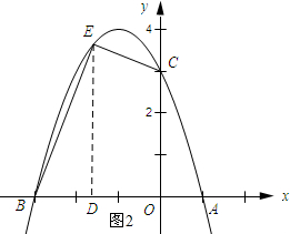 (3)如图2所示,过点E作ED⊥AB,垂足为点D,列出四边形的面积与点E的横坐标x之间的函数关系式,利用配方法求得最大值以及点E的横坐标,从而可求得点E的坐标.