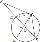 分析 (1)连接OC,可得∠BOC=120°,所以∠OBC=∠OCB=30°,可得∠P=∠OBC=30°,∠DOC=60°,从而求得∠PCO=90°,即可证明;
