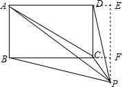 分析 首先过点P作PE⊥AD,分别交AD、BC的延长线于E、F两点,由P为矩形ABCD外一点,可得AD=BC,PF⊥BC,然后由三角形面积可得:S△PAC+S△PCD=S△PAD-S△CAD=$\frac{1}{2}$AD•PE-$\frac{1}{2}$AD•EF=$\frac{1}{2}$AD•(PE-EF)=$\frac{1}{2}$AD•PF,S△PBC=$\frac{1}{2}$BC•PF,则可求得答案.