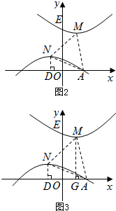 ¢ÙÈçͼ2£¬µ±MN=NA=2$\sqrt{2}$ʱ£¬¹ýµãN×÷ND¡ÍxÖᣬ´¹×ãΪµãD£¬ÔòÓÐND=1£¬DA=m-£¨-1£©=m+1£¬