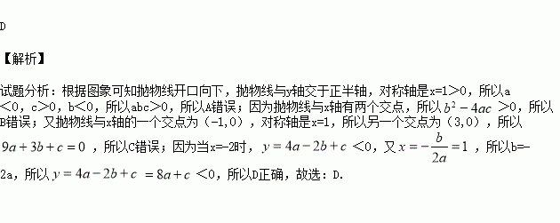 A.抛物线的开口向下 B.抛物线的顶点坐标是(1,-3)
