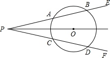 19.如图所示,点O是∠EPF平分线上的一点,以点O为圆心的圆与角的两边分别交于点A、B和C、D.