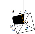分析 设正方形B的面积为S,正方形B对角线的交点为O,标注字母并过点O作边的垂线,根据正方形的性质可得OE=OM,∠EOM=90°,再根据同角的余角相等求出∠EOF=∠MON,然后利用“角边角”证明△OEF和△OMN全等,根据全等三角形的面积相等可得阴影部分的面积等于正方形B的面积的$\frac{1}{4}$,再求出正方形A的面积,同理可得图(2)中的阴影部分的面积等于正方形A的面积的$\frac{1}{4}$,然后整理即可得解.