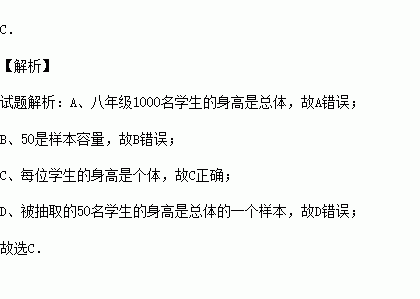 为了了解某校八年级1 000名学生的身高,从中抽取了50名学生并对他们的身高进行统计分析,以下说法正确的是( )