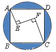 如图,在正方形ABCD内有一折线段,其中AE丄EF,EF丄FC,并且AE=3,EF=4,FC=5,则正方形ABCD的外接圆的半径是_______________.