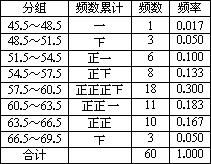 为了考查某学校学生的健康情况,在该学校随机抽取相同年龄的60名学生,测得他们的体重(单位:kg)分别为: