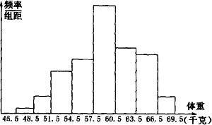 (2)如果体重在51.5~66.5kg的学生为正常体重,试求出落在正常体重范围内的学生的百分比;