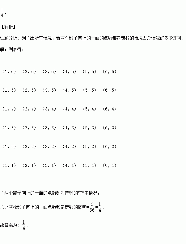 (2015秋•高密市期末)随机掷两枚质地均匀的正方体骰子,骰子的六个面上分别刻有1到6的点数,则这两枚骰子向上的一面点数都是奇数的概率是 .