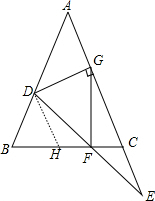 分析 作DH∥AC交BC于H,如图,利用等腰三角形的性质得∠B=∠ACB,再根据平行线的性质得∠BHD=∠ACB,则∠B=∠BHD,所以DB=DH,加上DB=CE,所以DH=CE,于是可根据“AAS”可证明△DHF≌△ECF,得到DF=EF,则GF为斜边DE上的中线,所以DE=2GF=2$\sqrt{2}$,然后根据含30度的直角三角形三边的关系可求出GE.