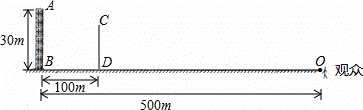如图假设一座大楼高30米,观众坐在距大楼500米处,魔术师只需做一个屏障,屏障上的图画和没有大楼以后的景物一样,将屏障立在大楼前100米处,这样观众看上去好像大楼突然消失了.若要完全挡住大楼,请你找到一个方法计算出屏障至少要多高?(人身高忽略不计)