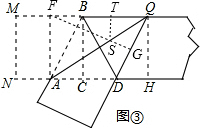 £¨4£©×÷FG¡ÍDQÓÚG£¬½»AQÓÚS£¬×÷ST¡ÍFQÓÚT£¬Èçͼ¢Û£¬ÓÉÕÛµþµÄÐÔÖʵáÏBQA=¡ÏDQA£¬¸ù¾Ý½Çƽ·ÖÏßÐÔÖʵÃST=SG£¬ÔòFG=ST+SF£¬ÀûÓô¹Ïß¶Î×î¶Ì¿ÉÅжÏFS+STµÄ×îСֵΪFGµÄ³¤£¬È»ºóÖ¤Ã÷Rt¡÷QDH¡×Rt¡÷FQG£¬ÔÙÀûÓÃÏàËÆ±È¼ÆËãFG¼´¿É£®