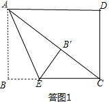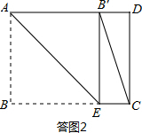 ②当点B′落在AD边上时,如答图2所示.此时四边形ABEB′为正方形.