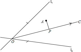 分析 根据题意知道,点P应满足两个条件,一是在两条公路夹角的平分线上,二是P到A的距离最短,由此先作出两条公路夹角的平分线OC,再根据垂线段最短可过点A作AP⊥OC交OC于点P,问题得解.