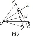 (3)分别作点M关于OA、OB的对称点E、F,连接EF、OE、OF、EM、FM,如图3:![]()