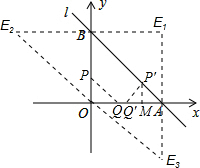 (3)分两种情况考虑:当P在OB上时,连接PQ,根据PQ的长及三角形OPQ为等腰直角三角形,求出OP的长,确定出此时P坐标;当P′在AB上时,过P′作P′M⊥x轴,确定出此时P′坐标即可.