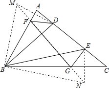 分析 (1)作点D关于直线AB的对称点M,作点E关于直线BC的对称点N,连接MN交AB于F交BC于G,于是得到结果.