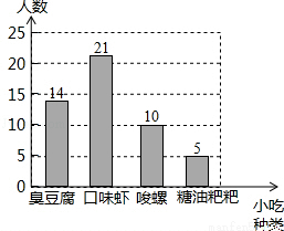 某数学兴趣小组在全校范围内随机抽取了50名同学进行“舌尖上的长沙﹣我最喜爱的长沙小吃”调查活动,将调查问卷整理后绘制成如图所示的不完整条形统计图: