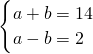 分析:设两对角线为a、b,则可得a+b=14,a-b=2,联立求出a、b的值,再由菱形面积等于对角线乘积的一半,可得出答案.
