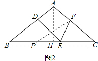分析 (1)过F作FP∥AB交BC于P,根据平行线的直线得到∠EPF=∠B,由已知条件得到∠A=∠BDE=∠BEF,推出△BDE≌△EFP,得到BE=PF,根据等腰三角形的性质得到∠B=∠C,等量代换得到∠FPE=∠C,于是得到FP=FC,即可得到结论;