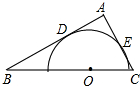 如图,已知△ABC是直角三角形,∠A=90°,AC=3,AB=4,O是BC上的点,⊙O与AB、AC相切于点D、E,求AD的长.