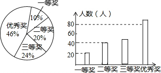 (4)根据题意得:一等奖有:20人,二等奖有:200×20%=40人,三等奖有:200×24%=48人,优秀奖有:200×46%=92人.