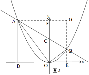 (2)如图2,作辅助线,构建平行线和相似三角形,根据CF∥BG,由A的横坐标为-4,得B的横坐标为1,所以A(-4,16a),B(1,a),证明△ADO∽△OEB,则$\frac{AD}{OE}=\frac{OD}{BE}$,得a的值及B的坐标;