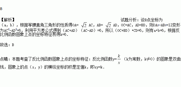 在第一象限的图象经过点B,若OA²-AB²=12,则