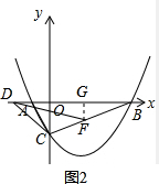 ②假设存在点D,使DF=BF,作FG⊥AB于G,先证得△CDF∽△CBD,得出$\frac{CD}{BC}=\frac{CF}{CD}=\frac{DF}{BD}$=$\frac{\sqrt{5}}{4}$,进而求得CD=$\frac{5}{2}$,然后在RT△ODC中,根据勾股定理求得OD,从而求得D的坐标.