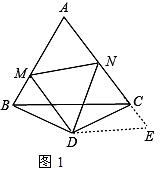 ∵∠MDN=∠MDB+∠BDN=∠CDE+∠BDN=60°,
