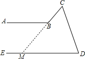 分析:延长CB交ED于点M,∠ABC与∠EMB是同位角,如果这两个角相等,则两直线平行.从而可以得到∠B、∠D、∠C的关系.