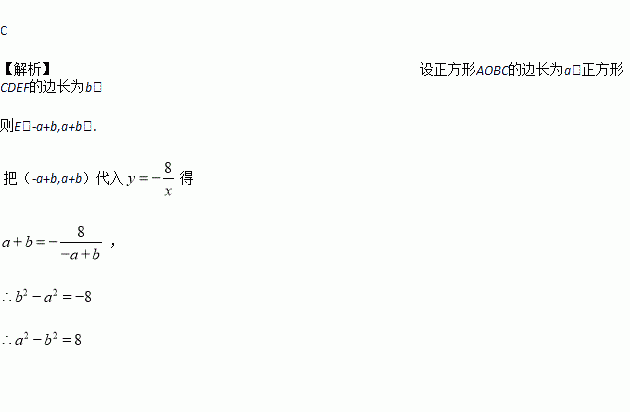 在第二象限的图象经过点E,则正方形AOBC和正方形CDEF的面积之差为( )
