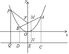 (2)设P(t,$\frac{1}{4}$t2),利用两点间的距离公式得到PF2=($\frac{1}{4}$t2+1)2,PQ2=($\frac{1}{4}$t2+1)2,从而可判定PF=PQ;