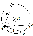 分析 分别作OD⊥AB,OE⊥AC,垂足分别是D、E,则根据垂径定理得到AE=$\frac{1}{2}$AC=$\sqrt{3}$,AD=$\frac{1}{2}$AB=$\sqrt{2}$,再根据锐角三角函数的定义,在Rt△OAE中可计算出∠OAE=30°,在Rt△OAD中计算出∠OAD=45°,然后分类讨论:当AB,AC在圆心的两侧时,∠BAC=∠OAD+∠OAE;当AB,AC在圆心的同侧时∠BAC′=∠OAD-∠OAE,再由圆周角定理即可得出结论.